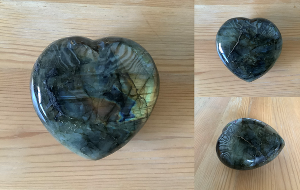 アパタイトは、フッ素燐灰石という歯や骨に近い成分からなる鉱物です。ギリシア語の「apate」から派生し、「裏切り」や「ごまかし」、「惑わす」と言った意味があります。この石は小さめのハート形ですが、手に取るとズシッとした重みがあることに気付きます。